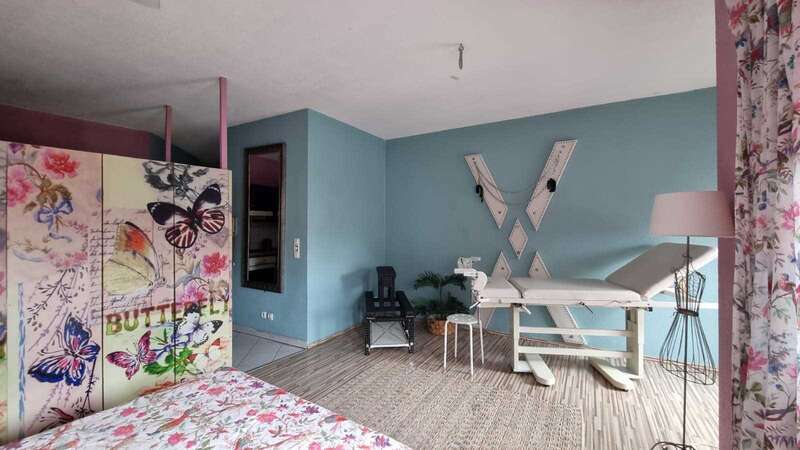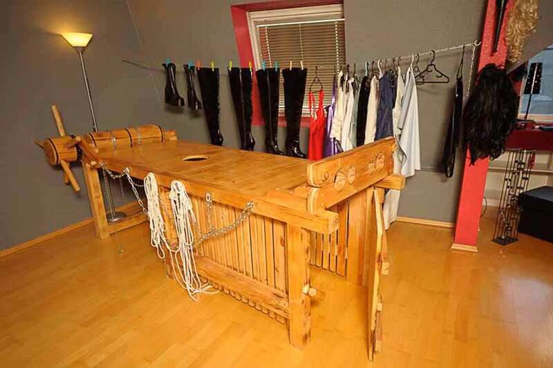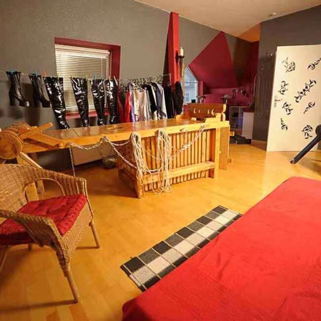 Пълният инвентар на добре поддържано, индивидуално обзаведено фетиш студио се продава на адрес Демерингщрасе 28 в Лайпциг. Всички мебели и обзавеждане са в много добро състояние и са изработени по поръчка или висококачествени, уникални.