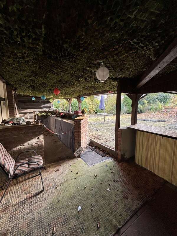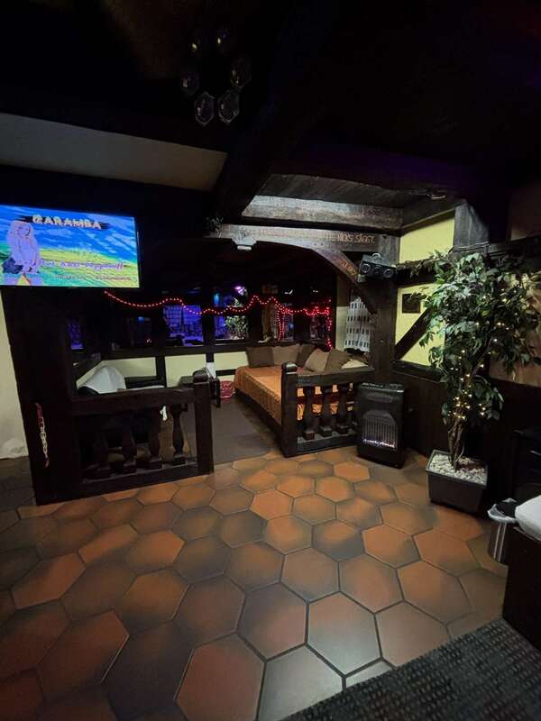 На щедър парцел от 13 099 квадратни метра има общо 484 м² отдадени под наем търговски площи и нает апартамент на горния етаж с приблизително 95 м² жилищна площ. Търговското пространство в момента генерира месечен доход от приблизително 15 000 евро, което го прави изключително атрактивна инвестиционна възможност. Бизнесът остава отворен и може да бъде поет при продажба.